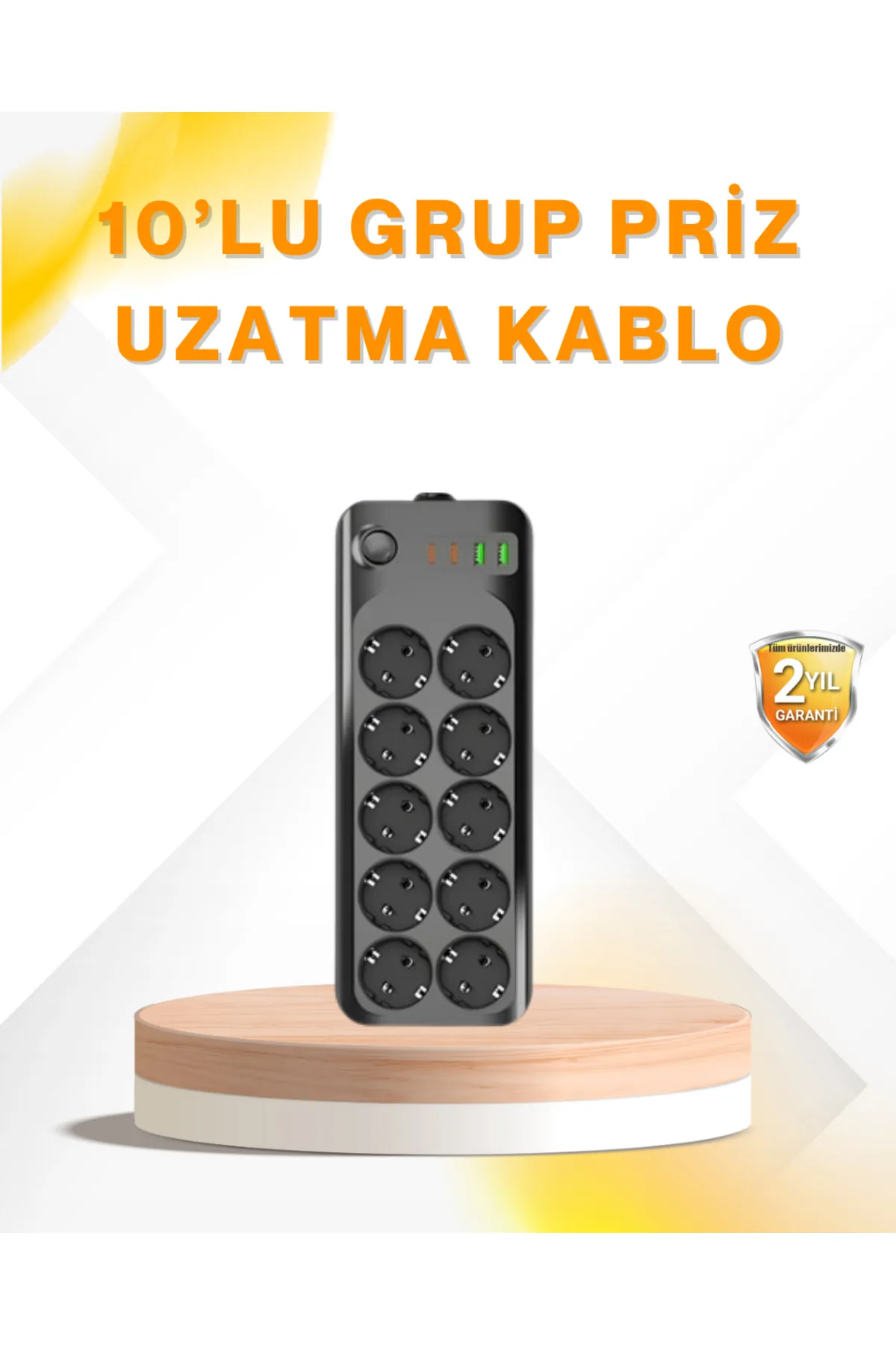 fantastik store 10’lu Çoklu Priz Termal Korumalı USB Type-C Çıkışlı 2500W Uzatma Kablosu