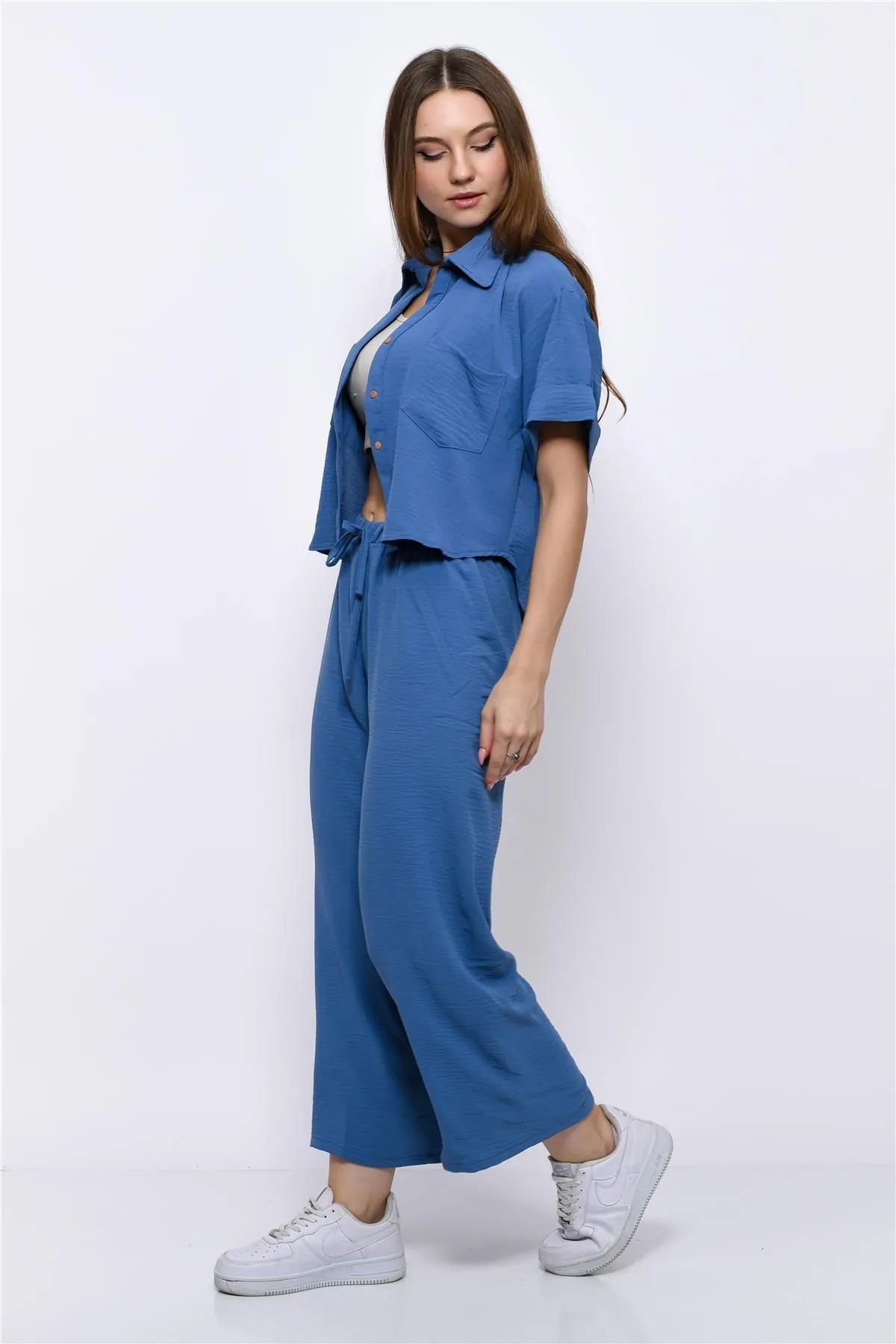 Nuseel Aerobin Crop Gömlek Beli Lastikli Pantolon 2li Takım Mavi
