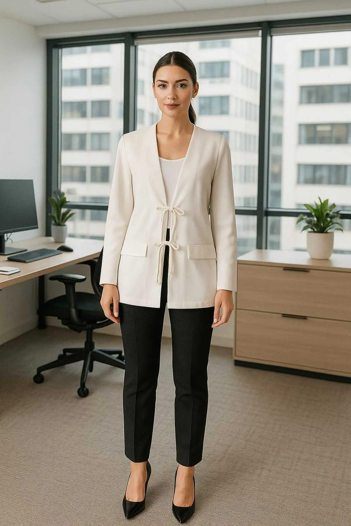 ŞIK VE MUTLU Bağlamalı Viskon Kumaş Blazer Ceket