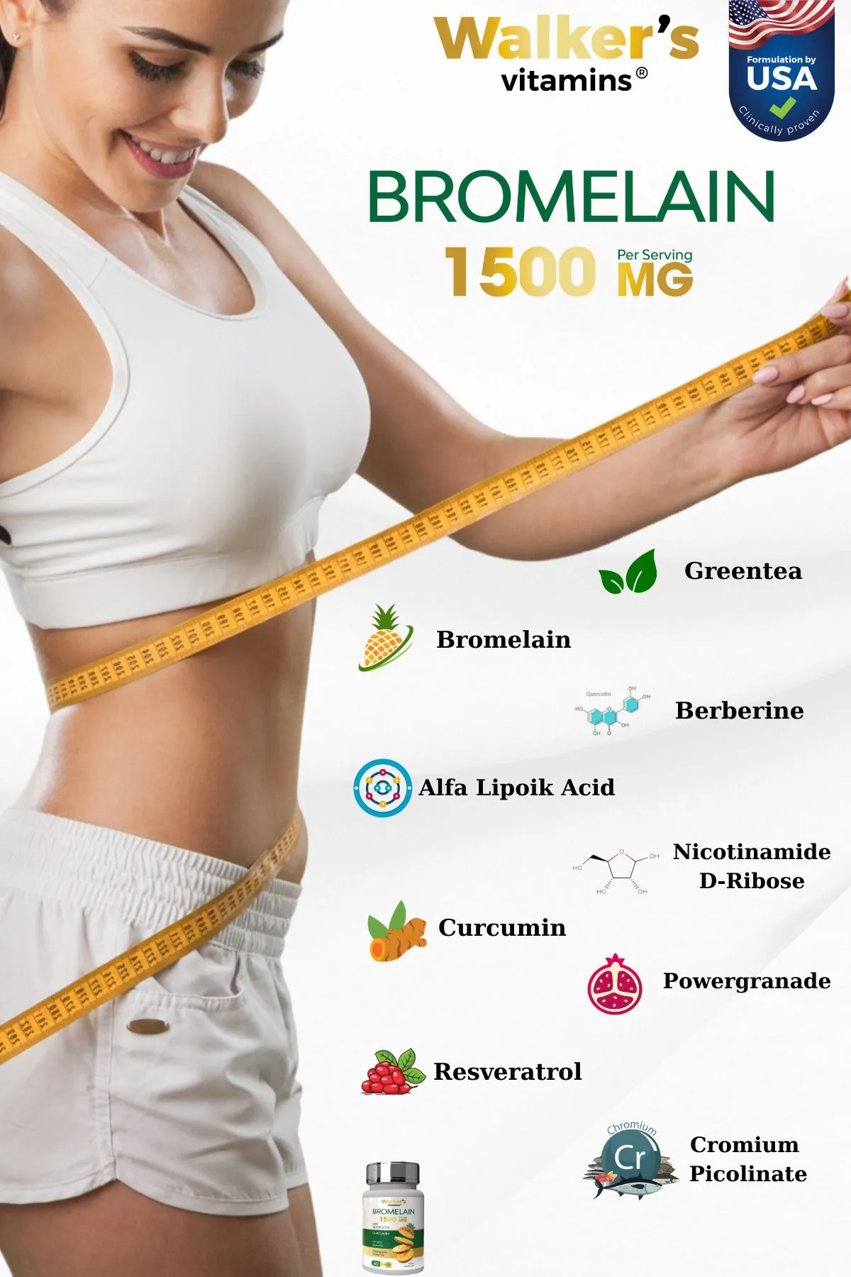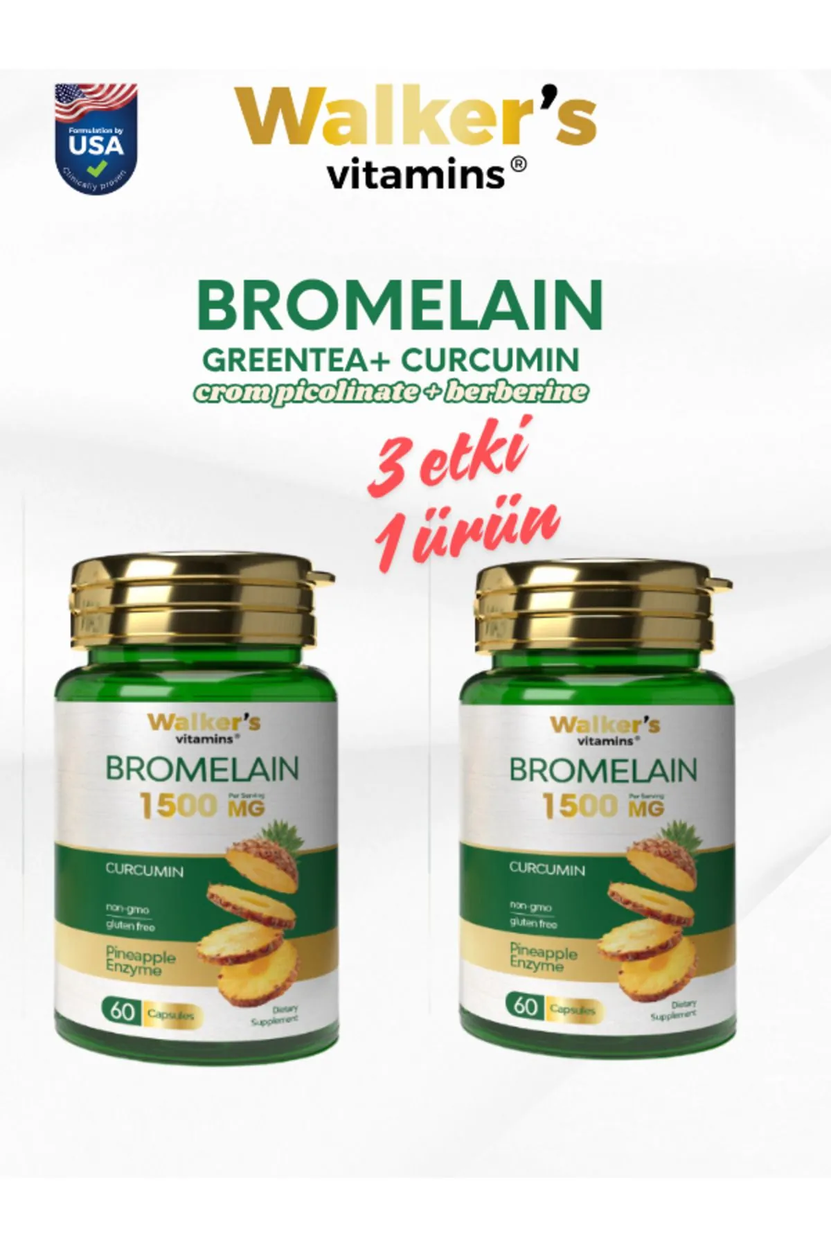 Walkers Bromelain yeşil çay, krom, curcumin, berberine, resveratrol. (2'Lİ)
