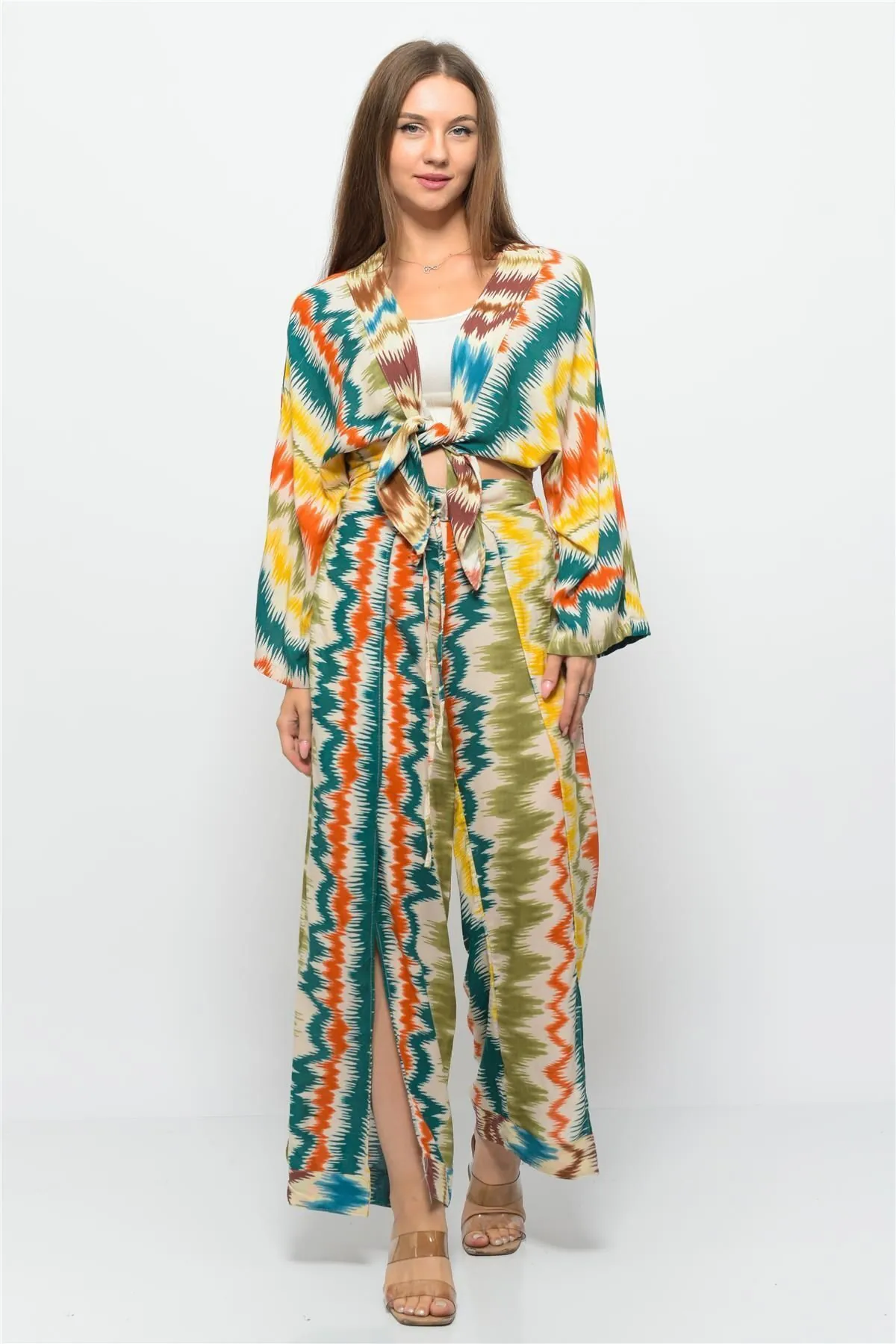 Nuseel Dalga Desenli Pareo Pantolon Desenli Sarı-Petrol Mavisi