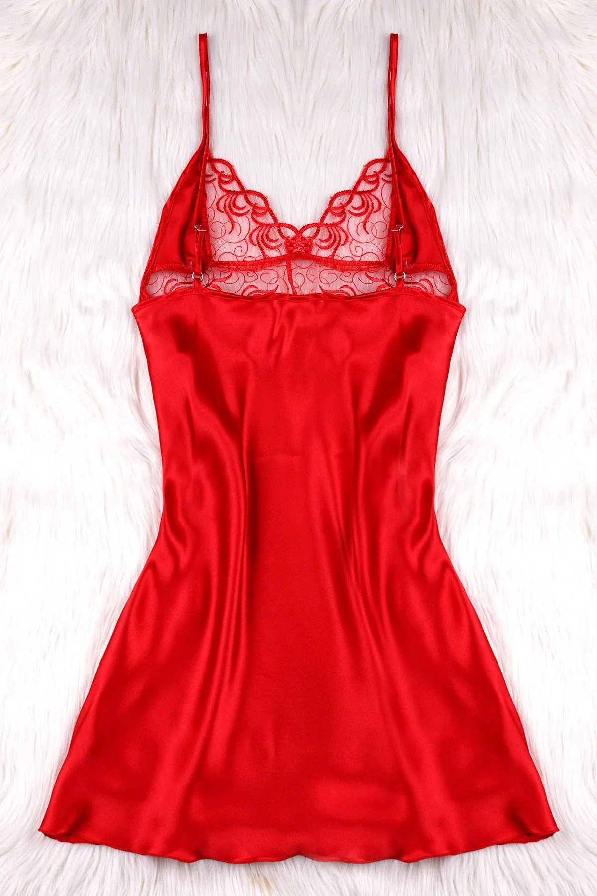 FantaziAtölyesi Gögüs Dekolteli Askılı Kırmızı Renk Saten Gecelik
