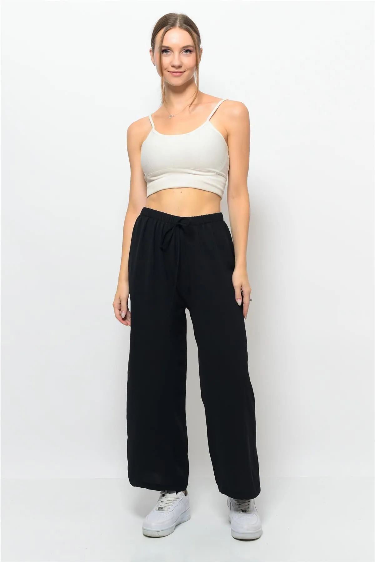 Nuseel Kadın Aerobin Kumaş Palazzo Model Pantolon Siyah