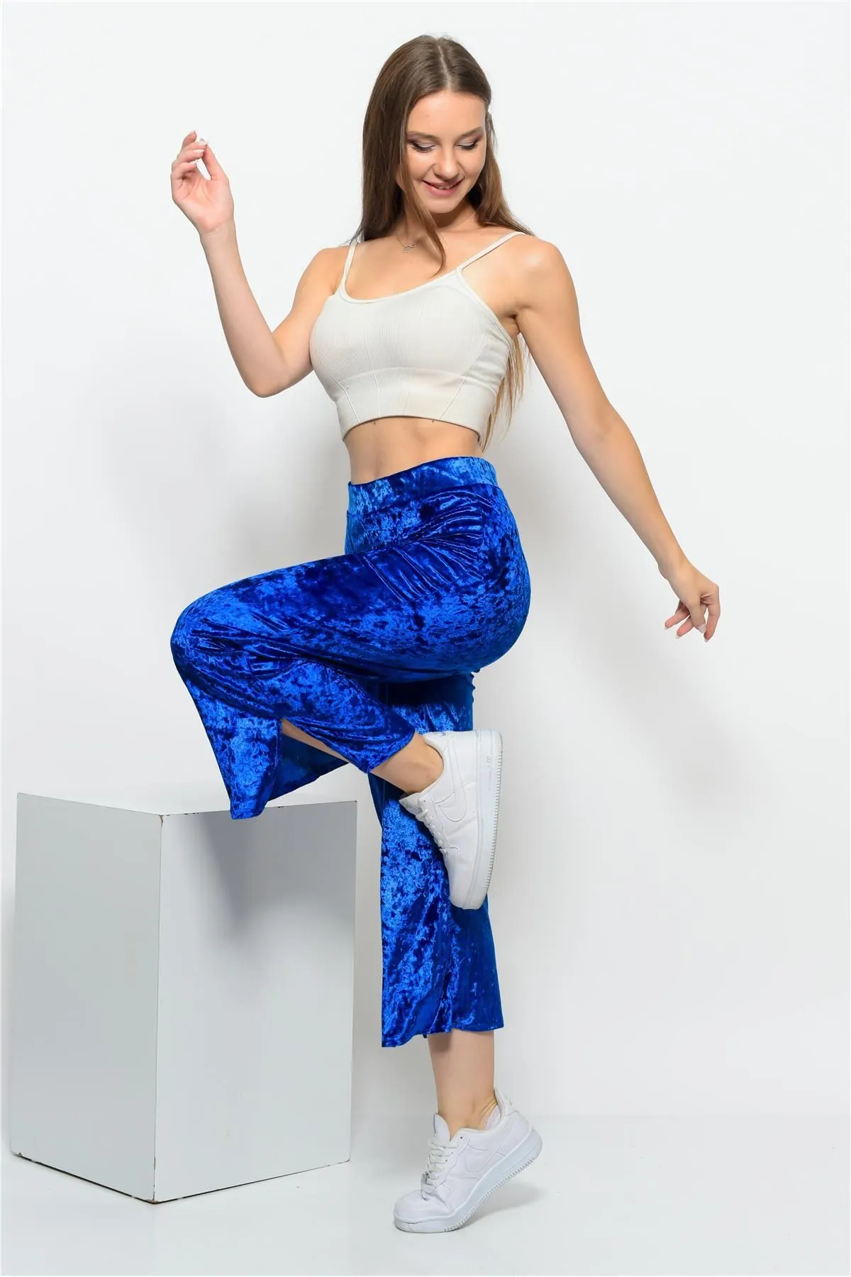 Nuseel Kadın Beli Lastikli Yandan Yırtmaçlı Janjanlı Kadife Pantolon Saks