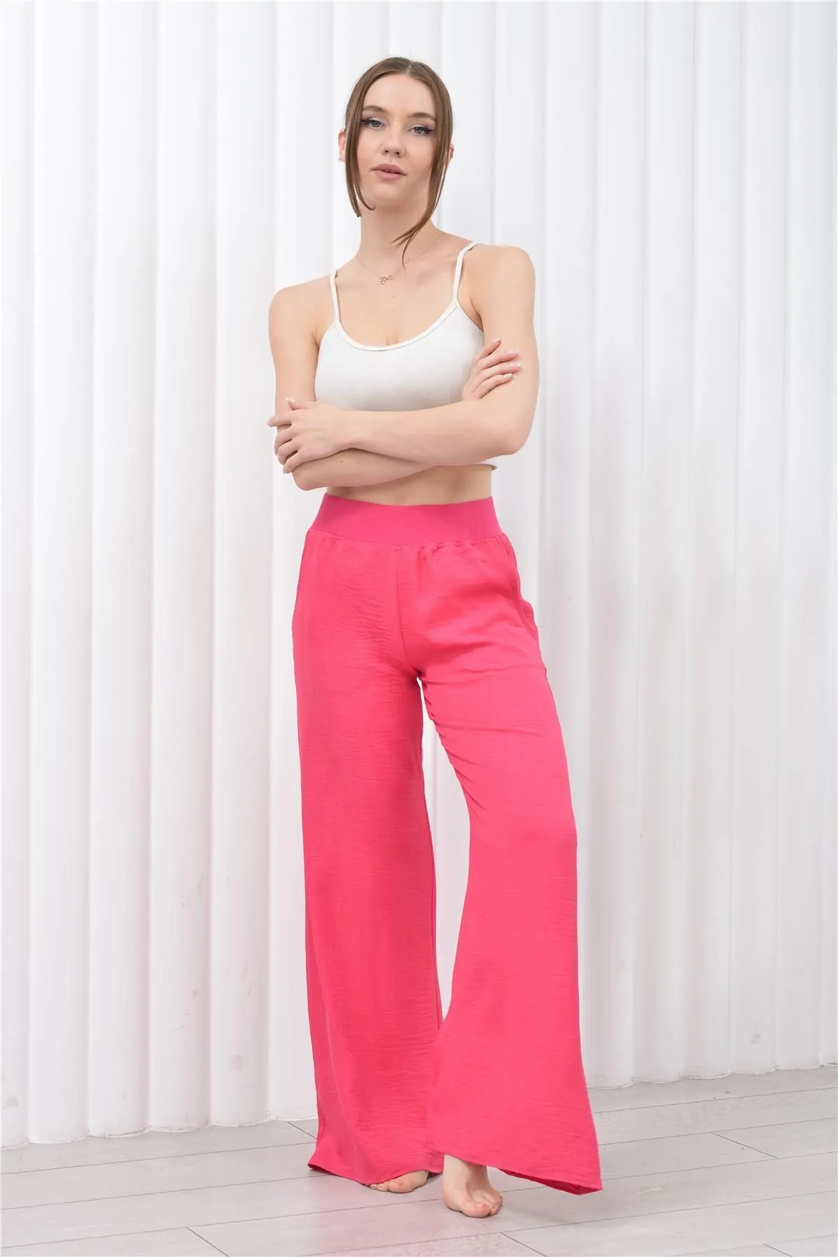 Nuseel Kadın Keten Beli Lastikli Cepli Pantolon Pembe