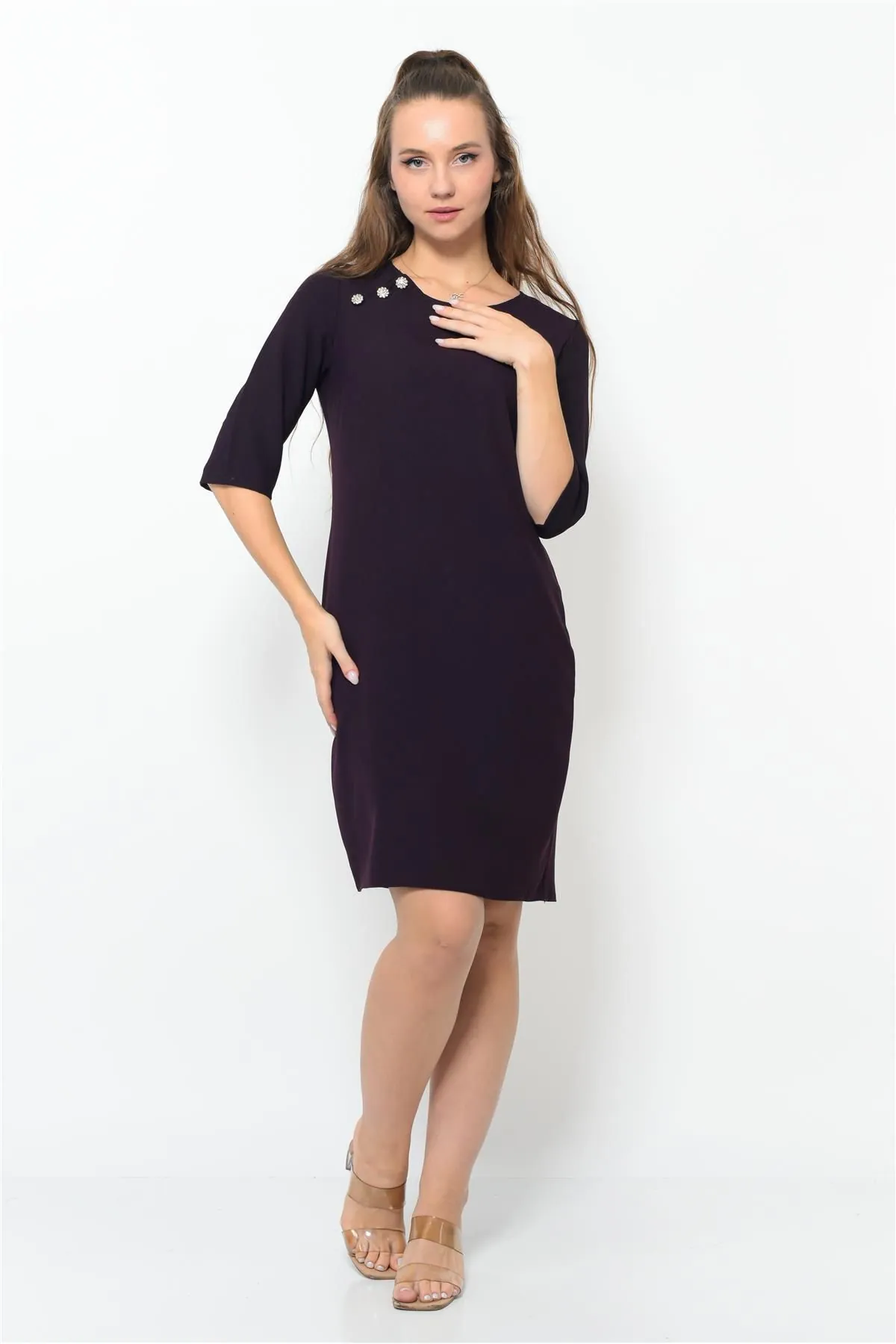 Nuseel Kadın Omuzdan Düğmeli Mini Elbise Mürdüm