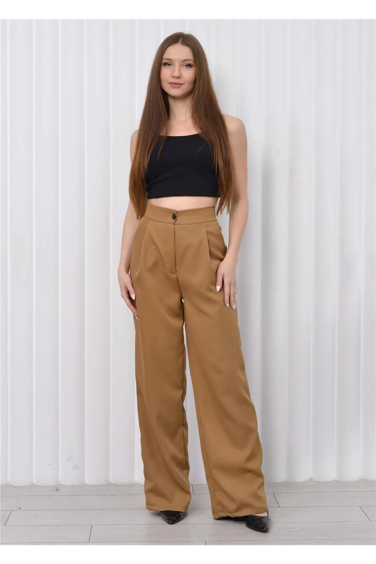 Nuseel Kadın Yüksek Bel Palazzo Pantolon Kahve