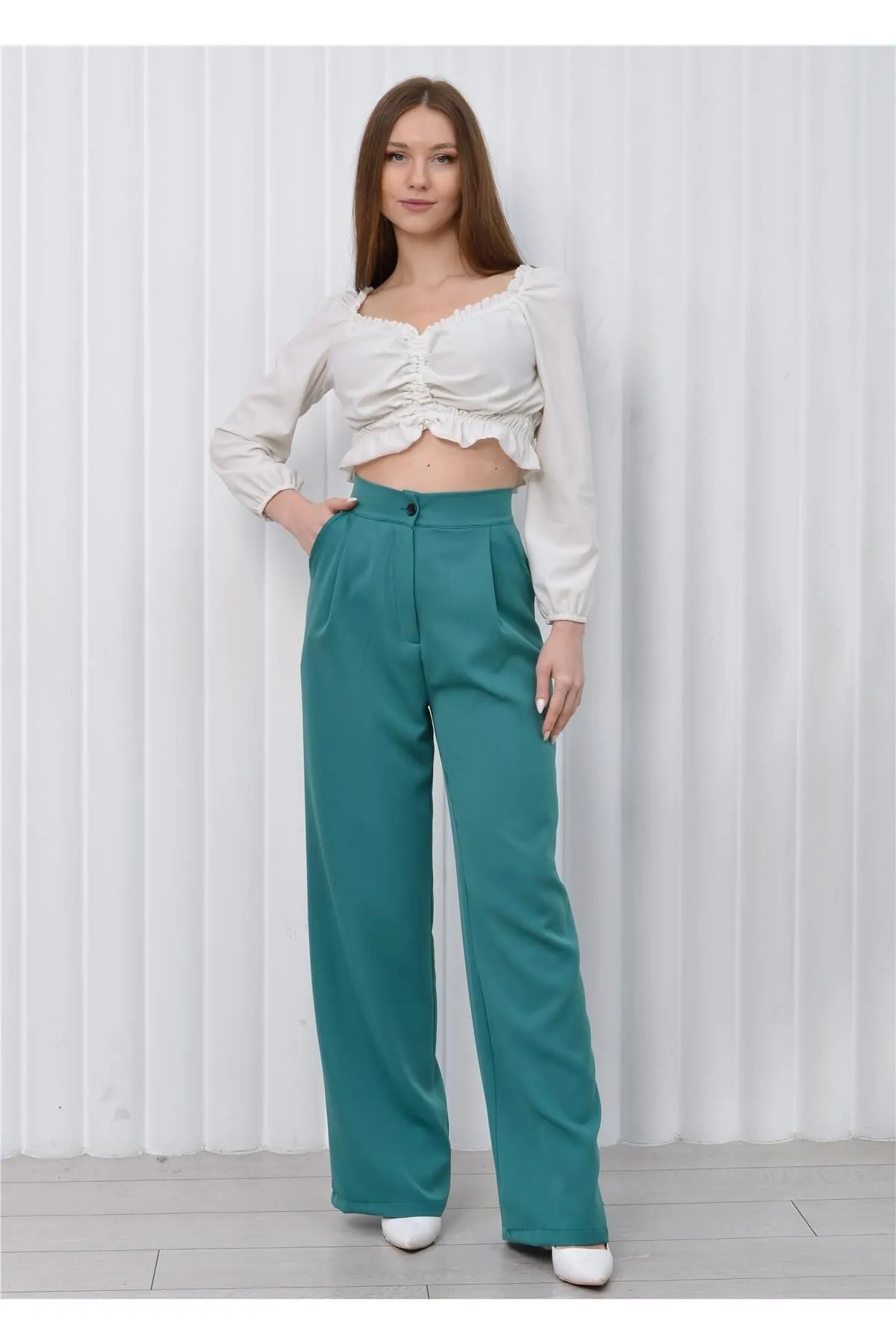 Nuseel Kadın Yüksek Bel Palazzo Pantolon Petrol Mavisi