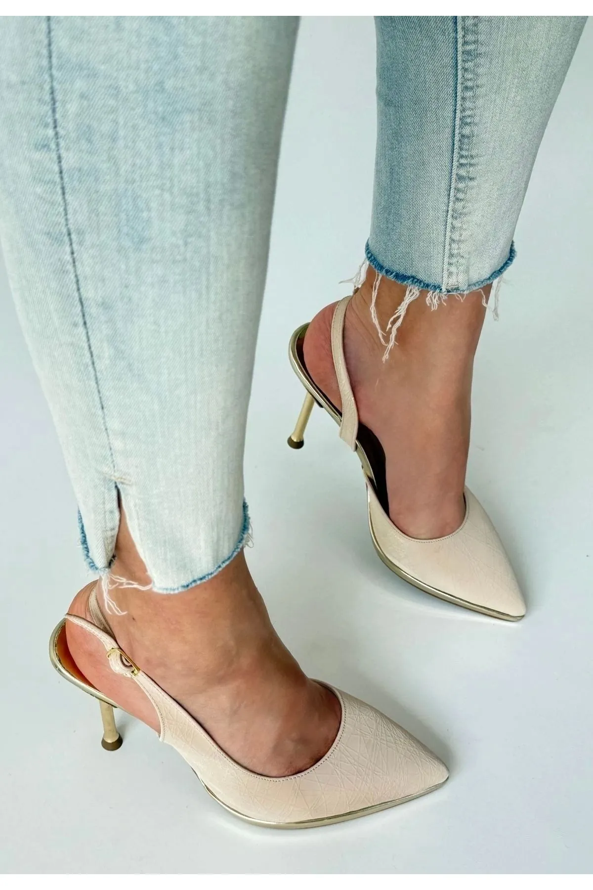 Kalyt Bej Cilt Topuklu Ayakkabı