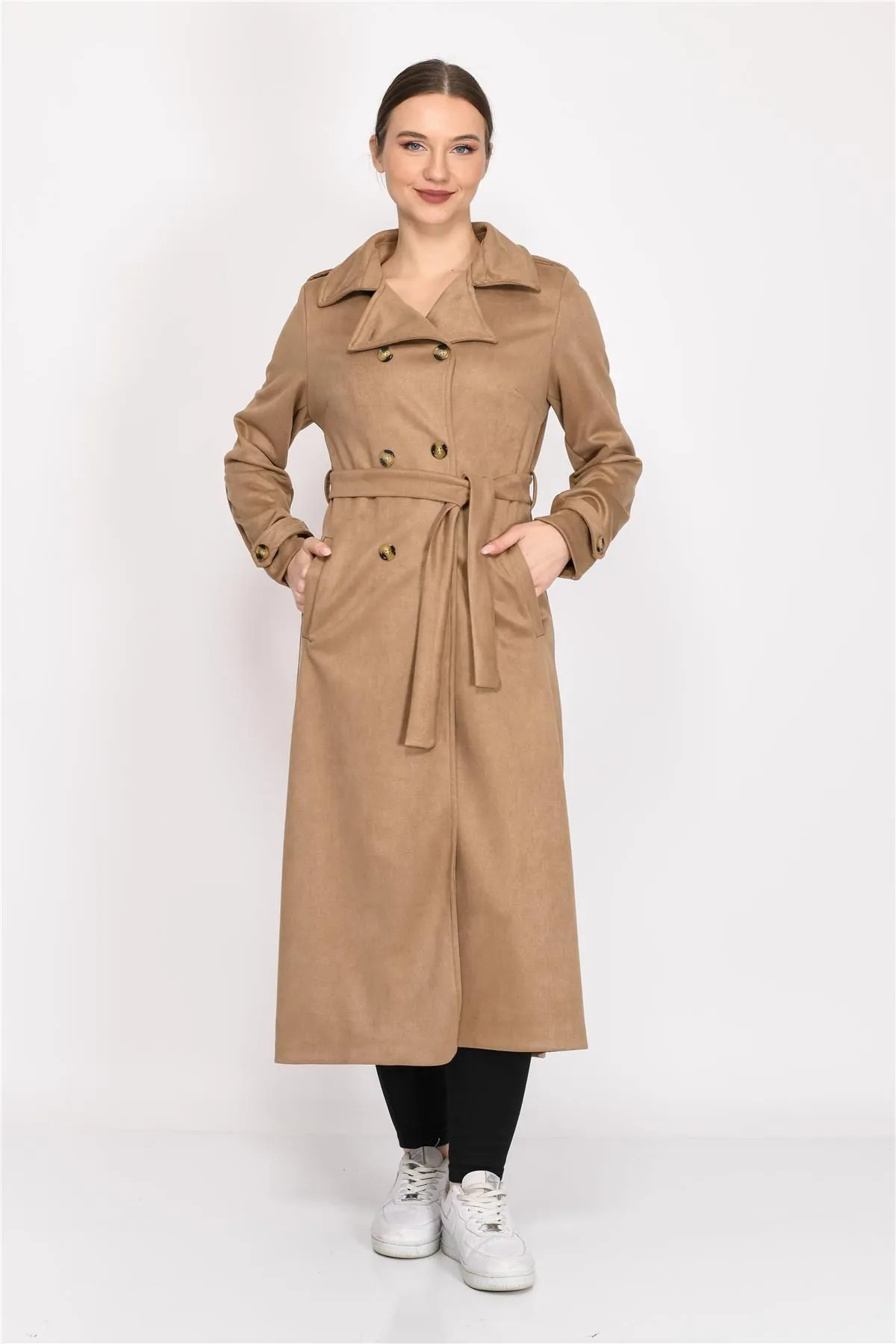Nuseel Kruvaze Yaka Suni Süet Trençkot Vizyon