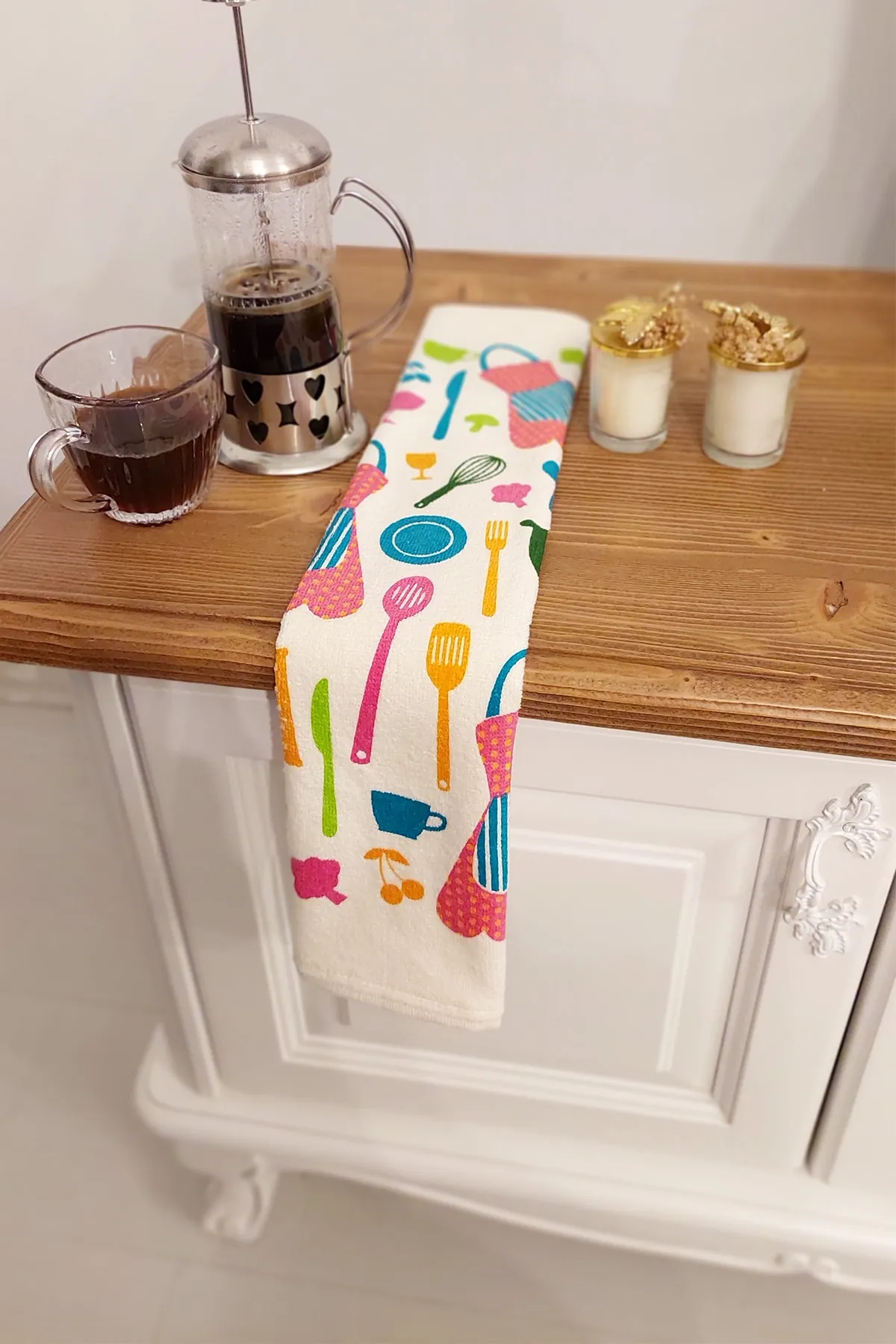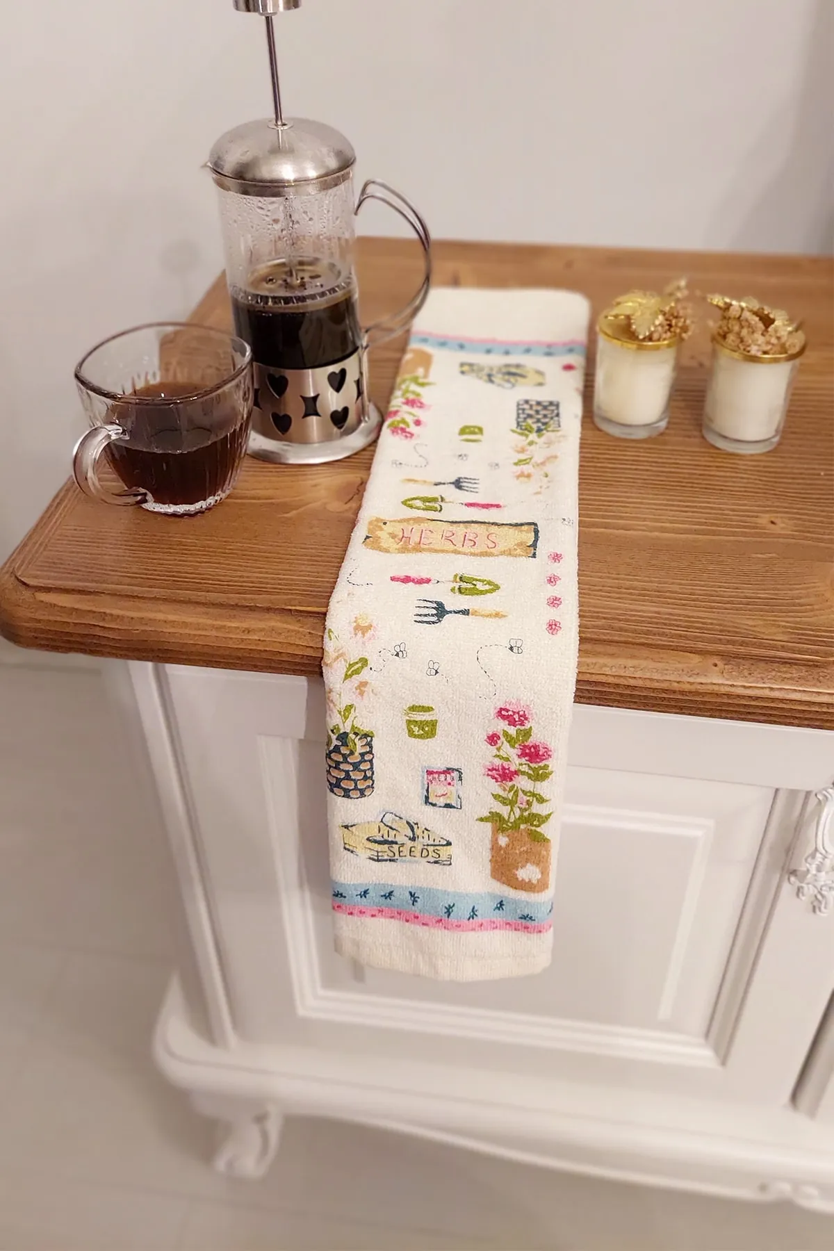 Cnr Garden Meslina 3'lü Pamuklu Baskılı Havlu Seti 30x50 Cm El Yüz Mutfak Havlusu Set