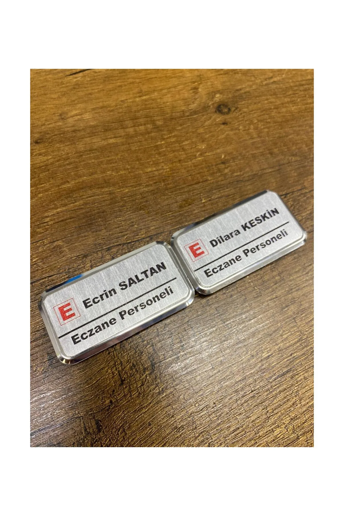 Umurcraft Yaka Kartı İsimlik Metal 20 Adet İğneli Logo Baskılı Premium Dikdörtgen (Gümüş)