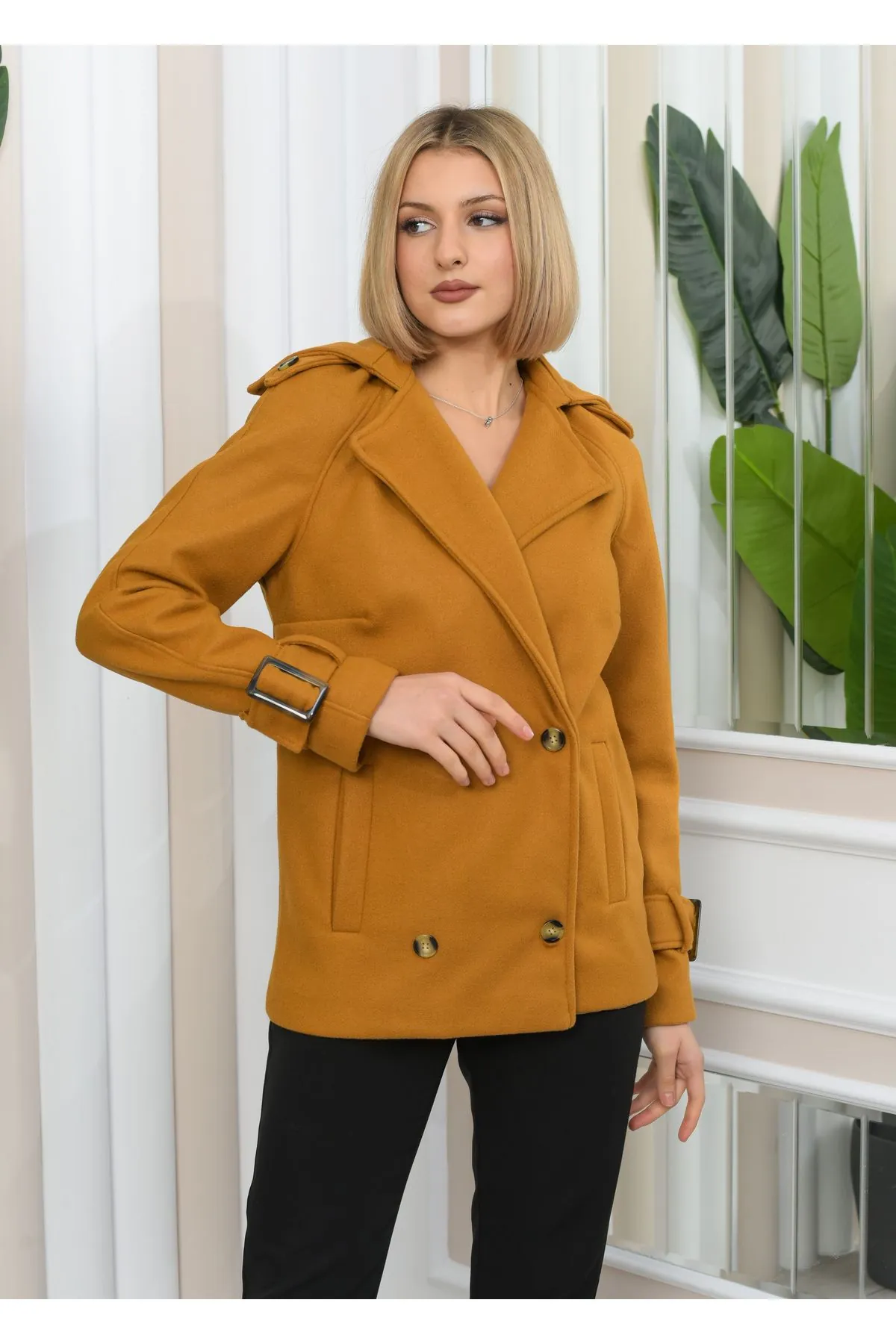 Nuseel Yeni Sezon Kruvaze Yaka Astar Detaylı Kısa Kaşe Kaban