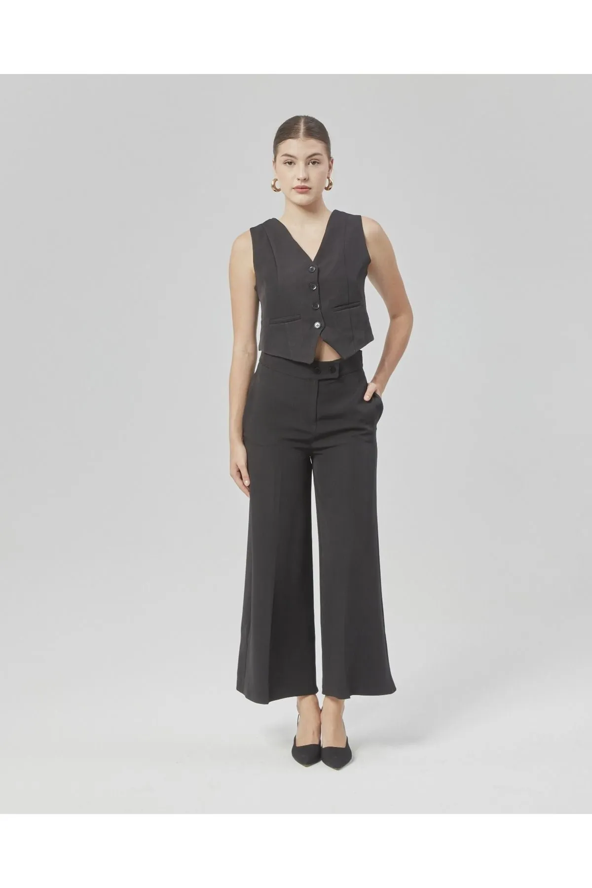 Nuseel Yeni Sezon Yüksek Bel Culotte Pantolon & Yelek Siyah
